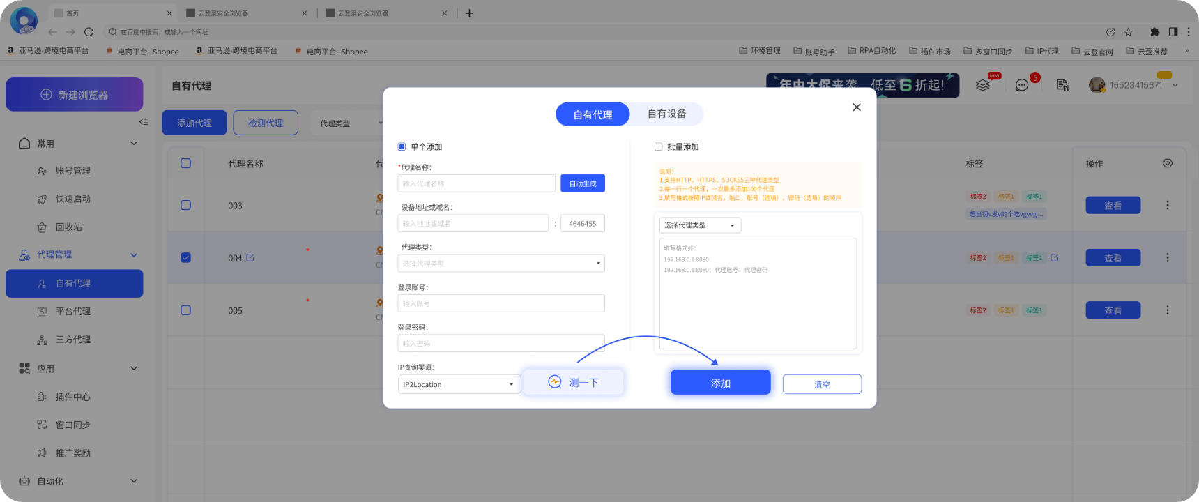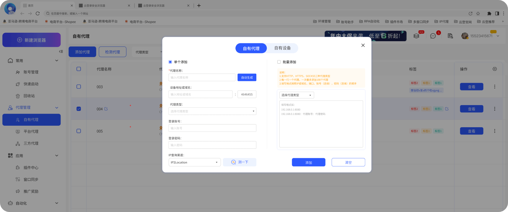 即使您使用的是非云登浏览器上的购买的代理,也可以快速添加到云登浏览器中,实现批量安全管理,而不需要改变原有环境。